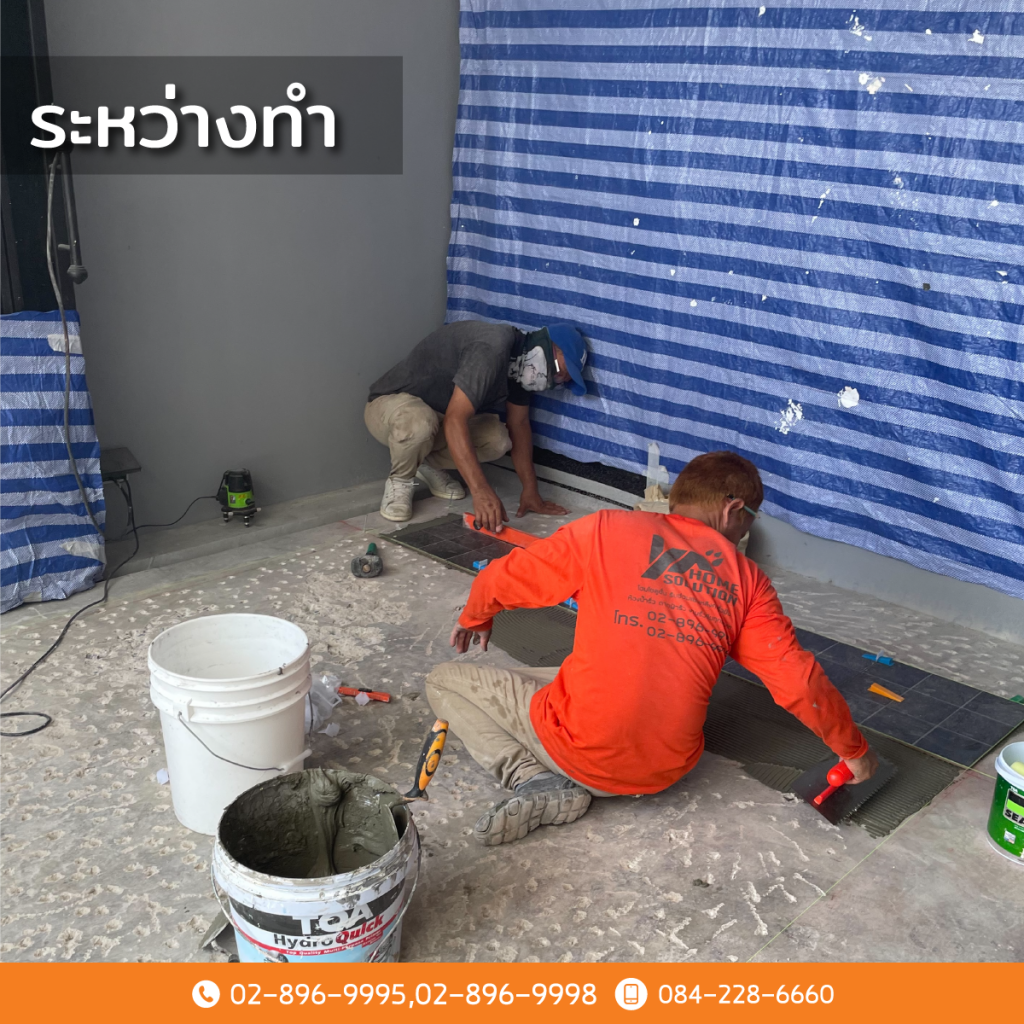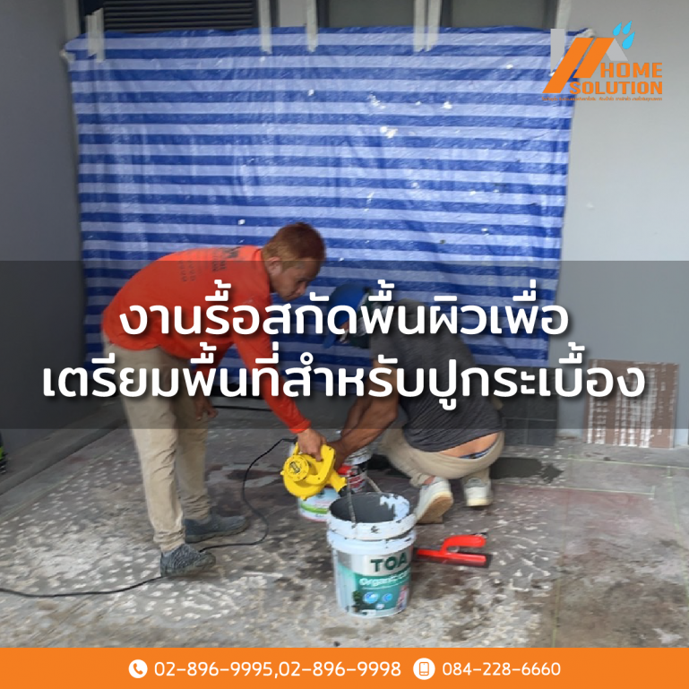 งานรื้อสกัดพื้นผิดเพื่อเตรียมพื้นที่สำหรับปูกระเบื้อง
