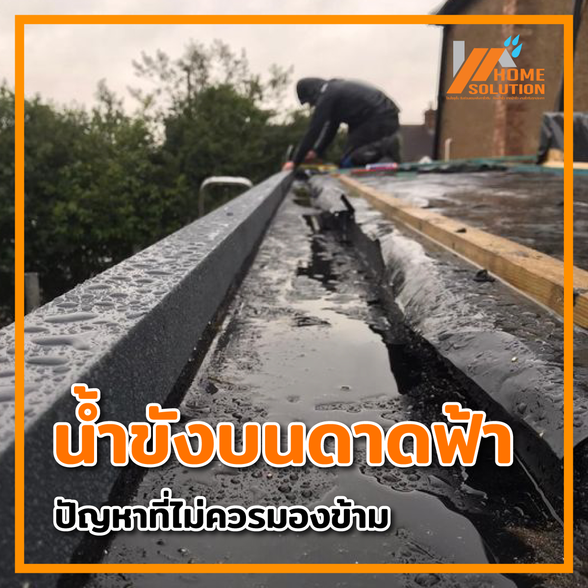 อีกหนึ่งปัญหาที่ไม่ควรมองข้าม ก็คือน้ำขังบริเวณดาดฟ้า ที่ส่งผลให้เกิดการรั่วซึม โดยสาเหตุหลักเกิดจากดาดฟ้ามีความลาดชันน้อยเกินไป ทำให้เวลาฝนตกลงมาน้ำไม่สามารถไหลระบายได้ รวมถึงการมีแอ่งหลุมบนดาดฟ้า ก็มีส่วนทำให้เกิดน้ำท่วมขังได้เช่นกัน นอกจากนี้การที่พื้นหลังคาเป็นหลังเต่าโดยมีเนินทั้ง 2 ด้าน ก็มีส่วนทำให้เกิดน้ำขังเป็นเวลานาน รวมถึงอาจเกิดจากการเทคอนกรีต หรือขั้นตอนการก่อสร้างที่ไม่ได้มาตรฐาน จึงทำให้เกิดปัญหาดาดฟ้ามีน้ำท่วมขัง เพื่อยับยั้งไม่ให้ปัญหาบานปลาย จนยากที่จะรับมือไหว หากพบปัญหาดังกล่าวควรรีบทำการแก้ไขซ่อมแซมทันที ให้ homesolution ช่างผู้เชี่ยวชาญงานรั่วซึมช่วยแก้ไข