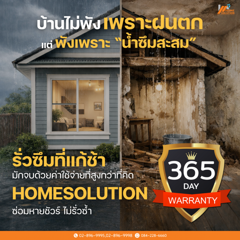บ้านไม่พังเพราะฝนตกแต่พังเพราะ “น้ำซึมสะสม” Posted on 02/02/2026 by admin Leave a Comment on บ้านไม่พังเพราะฝนตกแต่พังเพราะ “น้ำซึมสะสม” ฝนไม่ได้ทำให้บ้านเสียหายในวันเดียวแต่น้ำที่ค่อย ๆ ซึม คือสิ่งที่ทำลายบ้านแบบเงียบที่สุด Homesolution ซ่อมหายชัวร์ ไม่รั่วซ้ำ